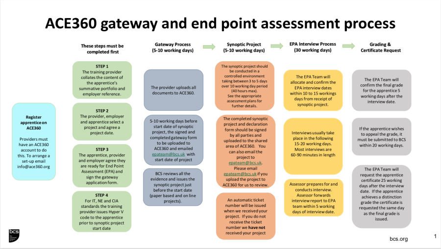 The EPA is conducted by the British Computer Society (BCS) the awarding body for the apprenticeship